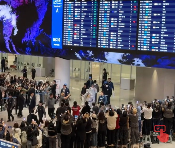 Фэллон признался, что очень скучал по артистам и по их непринуждённой манере общения. Они вскользь упомянули военную службу, которая разлучила участников коллектива со своими преданными слушателями почти на пять лет. «Наконец-то мы все вместе», — выдохнут Ким Тэхён. «Воссоединение с семьёй», — поддержал его Джин.